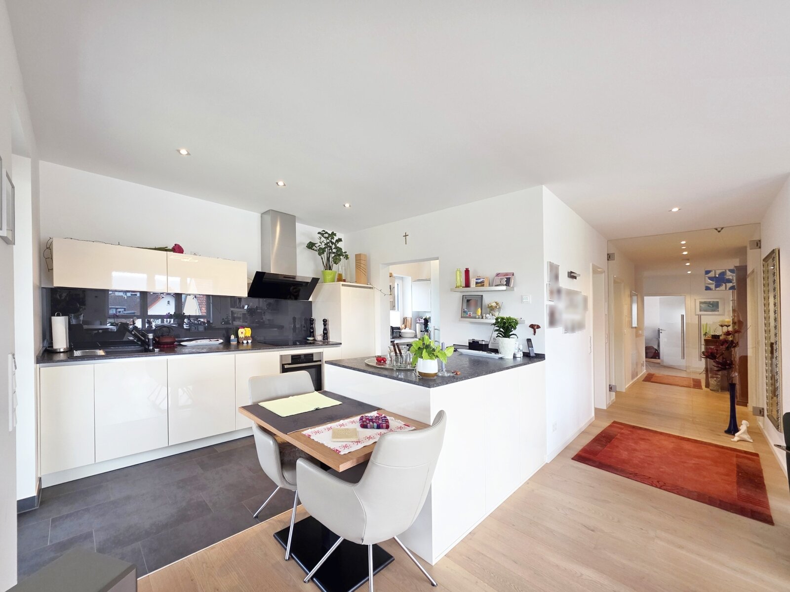 Die moderne Küche ist optimal integriert und verfügt über einen direkten Zugang zum Hauswirtschafts- bzw. Abstellraum.